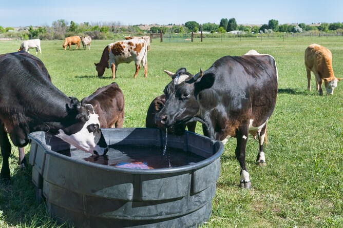 One lactating dairy cow can drink up to 200 litres per day. This depends on feed type, body size, milk production, temperature, humidity of the environment, water access and quality. Water problems are often unnoticed and ignored but can cause production problems, BCS loss, decreased feed intake and decreased feed conversion.
