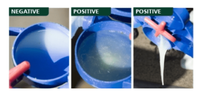 The rapid mastitis test (RMT) is often used to diagnose subclinical mastitis in individual quarters. For a reliable result, tests should be conducted just before milking, after discarding the foremilk, by mixing an equal amount of milk with the same amount of test reagent.