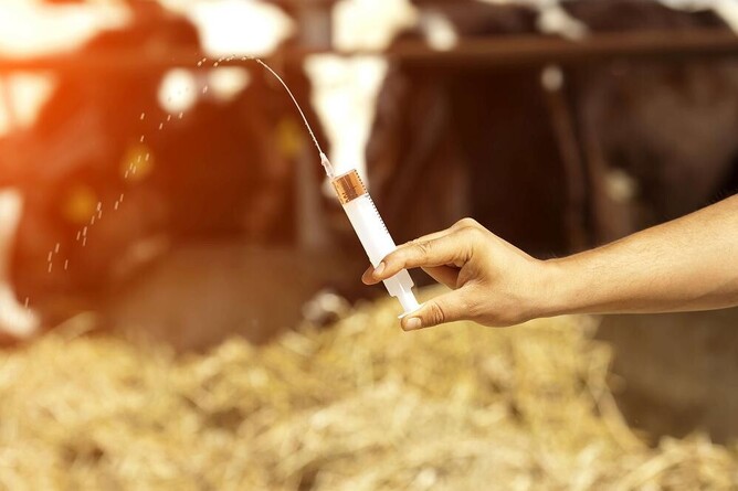It should be given about two weeks before the ‘risk period’. For most dairy herds, the best time is at dry-off, as the vaccine can cause a drop in milk production and a mild fever.