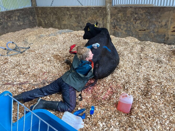 1. If you are assisting a cow to calve and have made no progress after 10 minutes, call your vet for a hand.