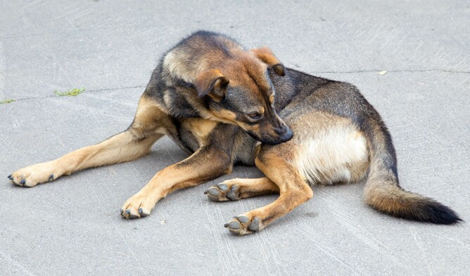 Is your dog scratching, biting, licking, rubbing his skin, or rolling on the ground?
